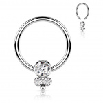 Anneau CBR Noir en acier à jonction triple strass et perle
