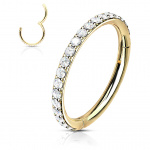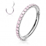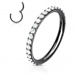 Imagine-toi avec cet anneau chic et moderne qui complète parfaitement ta collection de piercings. Son design est à la fois sophistiqué et discret, faisant de lui un incontournable pour toutes les occasions. Grâce à sa surface sertie de pierres claires, il capte la lumière avec élégance, ajoutant une touche de brillance à ton look quotidien.