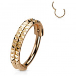 Anneau charnière Doré double-ligne pyramides en acier Doré haute précision