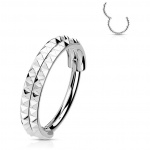 L'anneau charnière te garantit à la fois confort et praticité grâce à son mécanisme ingénieux. Simple à mettre et à enlever, il s'adapte à ton mode de vie dynamique tout en ajoutant une subtile touche d'originalité à ton look. Son design double-ligne met en valeur tes piercings de manière élégante et contemporaine.