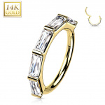 Anneau charnière en or blanc 14 carats à zirconiums rectangulaires