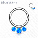 Anneau charnière en Titane à trio d'opales blanches