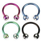 Anneau charnière Taureau Titane noir serti (septum, lobe, daith...)