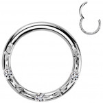 Anneau clicker Titane doré gravé de motifs et serti de zirconiums