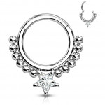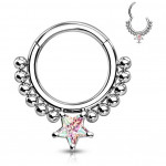 Anneau perlé en acier à étoile Bleue et charnière discrète