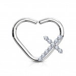 Anneau tordable cartilage en coeur cuivré à croix serti