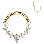 Anneau tordable plaqué or rose (oreille, septum...) à cinq strass