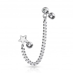 Imagine-toi arborant ce double piercing d'oreille, où l'élégance du triangle se marie parfaitement avec l'éclat du strass, captant la lumière et attirant les regards. La chaîne relie les deux éléments avec finesse, créant un effet visuel captivant et original. Ce bijou est parfait pour exprimer ta personnalité unique et affirmer ton style audacieux.