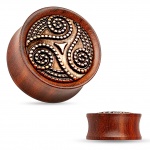 Ecarteur plug en bois d'ébène à bouclier tribal gravé en laiton