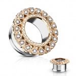 Ecarteur tunnel à couronne de coeurs dorée sertie