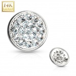 Embout piercing microdermal en or 14 carats à dôme plat pavé de zirconiums
