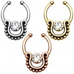Le laiton, avec ses reflets dorés, offre une base chaleureuse parfaite pour l'opale de synthèse, dont les nuances mystiques captivent instantanément le regard. Ce faux piercing te permet de plonger dans l'univers du piercing sans la moindre douleur. Idéal pour celles et ceux qui aiment jouer avec les tendances sans engagement permanent, il s'adapte à toutes les morphologies.
