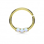 Imagine-toi arborant cet anneau d'exception. Les trois opales claires captent la lumière et reflètent des nuances subtiles et changeantes, attirant tous les regards. Leur éclat naturel se marie parfaitement avec l'acier, créant un contraste saisissant qui accentue la beauté de ton piercing. Que tu souhaites magnifier ton look quotidien ou briller lors d'un événement spécial, cet anneau en acier reste l'accessoire de charme par excellence.