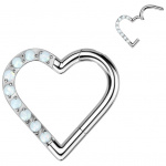 Piercing anneau Titane doré coeur à charnière et opales (lobe, daith/rook droit...)