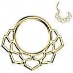 Ce piercing, vendu à l'unité, se distingue par son allure majestueuse qui n'est pas sans rappeler les trésors royaux. Que tu choisisses de le porter seul ou de le marier avec d'autres pièces, il assurera un effet visuel époustouflant qui ne laissera personne indifférent. Imagine-le orner ton oreille, ton nez ou même ton cartilage : un détail aussi chic qu'audacieux.