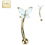 Piercing arcade en or blanc 14 carats à papillon d'opales