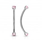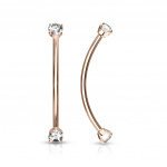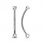 Piercing barbell long courbé doré à strass griffés