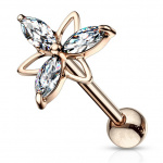 Ce piercing se distingue par son design sophistiqué et intemporel. La fleur, symbole de beauté et d'élégance, s'adapte parfaitement à toutes les occasions, que ce soit pour une soirée chic ou une journée décontractée. Les zirconiums en forme de triangles apportent une modernité audacieuse, parfaite pour affirmer ton style.