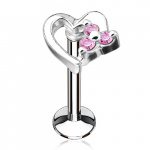 Piercing coeur cuivré à petite fleur strass (lèvre, cartilage)