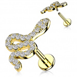 Piercing croix pattée dorée à rectangles strass (lèvre, cartilage)