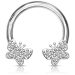 Piercing fer à cheval à papillons pavés de strass bleus aqua (septum, daith...)