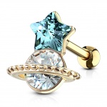Imagine un joli motif floral orné de pierres scintillantes grises, finement serties dans un délicat cadre doré. La douceur du gris se marie parfaitement avec l'éclat chaleureux du doré, créant un contraste subtil et raffiné. Ce bijou promet de devenir l'élément central de ton look, attirant tous les regards et complétant à merveille ta collection de piercings.