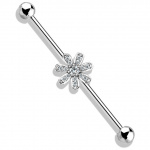 Piercing industriel cuivré fleur à sept pétales pavés de strass