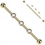Piercing industriel Titane doré à Trio de disques d'opale blanche