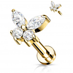 Piercing labret acier à papillon étincelant (filetage interne) - Clair
