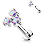 Piercing labret en acier à trio de strass roses (filetage interne)