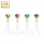Piercing labret en or 14 carats avec papillon et tige bioflex