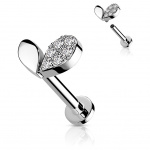 Piercing labret (hélix, flat...) éventail à 5 pierres en amande (filetage interne)