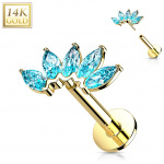 Piercing labret Opale Rose en Or Jaune 14 carats type "Push In"