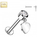 Piercing labret Or Jaune 14 carats à Coeur suspendue