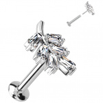 Piercing labret Titane à feuillage de zirconiums (lèvre, hélix, tragus...)