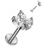 Piercing labret Titane à Feuille d'érable zirconiums roses (lèvre, tragus, hélix...)