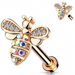 Piercing labret Titane à zirconium aurore boréale et base convexe (lèvre, tragus, hélix...)