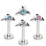 Piercing labret Titane à zirconium tanzanite et base convexe (lèvre, tragus, hélix...)
