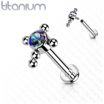 Piercing labret Titane Doré à croix de perles et zirconium (lèvre, hélix...)