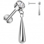 Piercing labret Titane doré serti à fine goutte (hélix, flat, lobe...)