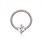 Admire l'éclat du zirconium à l'extrémité de ce piercing. Serti par des griffes méticuleusement placées, ce bijou affiche une élégance raffinée. Le contraste entre la brillance du zirconium et le titane noir donne un rendu esthétiquement plaisant. Cette pièce est d'autant plus facile à manipuler grâce à son filetage interne, qui facilite le remplacement de l'embout tout en préservant un design épuré.