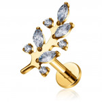 Piercing lèvre fleur noir à strass clairs et gemme aurore boréale centrale