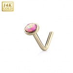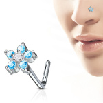 Piercing nez à boule sertie en or blanc 14 carats à tige en "L"
