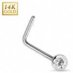 Piercing nez à boule sertie en or jaune 14 carats à tige en "L"