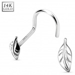 Piercing nez courbé en or jaune 14 carats avec feuille