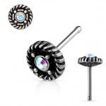 Piercing nez en or jaune 14 carats avec Opale de synthèse et tige en "L"