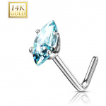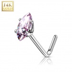 Piercing nez or blanc 14 carats à zirconium clair en amande - Tige L