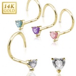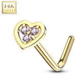 Piercing nez or blanc 14 carats coeur serti - Rouge - Tige L