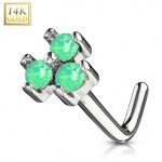 Piercing nez or blanc 14 carats tige L à trio d'Opales blanches