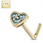 Piercing nez or 14 carats à embout coeur clair - Tige L